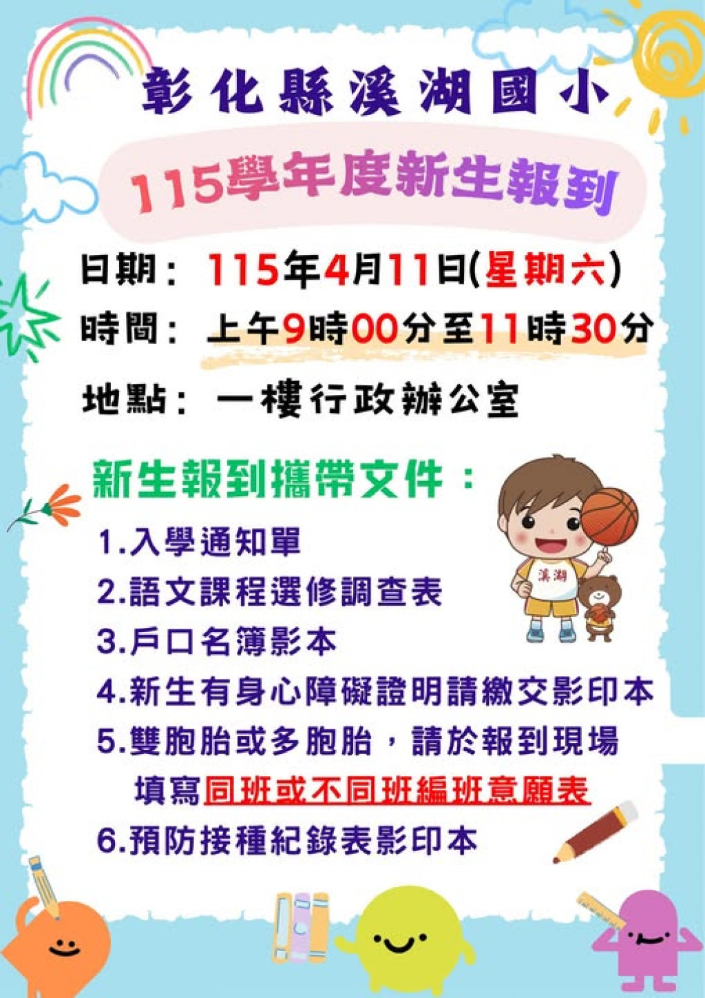 溪湖國小115學年度新生報到