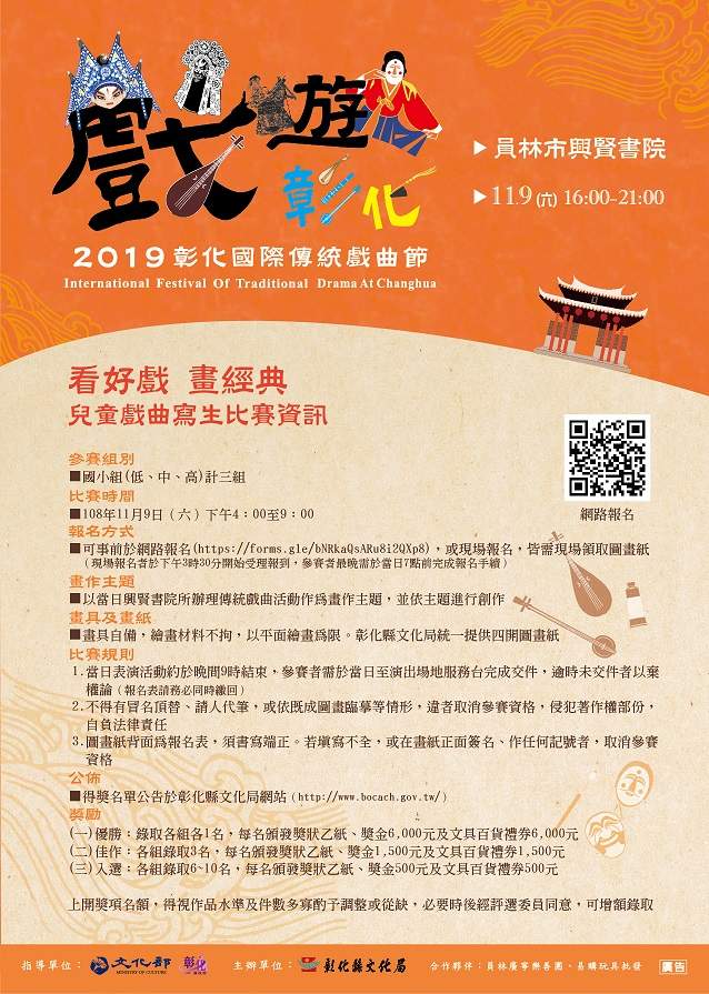 推展本縣兒童繪畫創作風氣,並鼓勵學生接觸傳統表演藝術,特辦理旨揭比賽,該比賽配合「戲遊彰化-2019彰