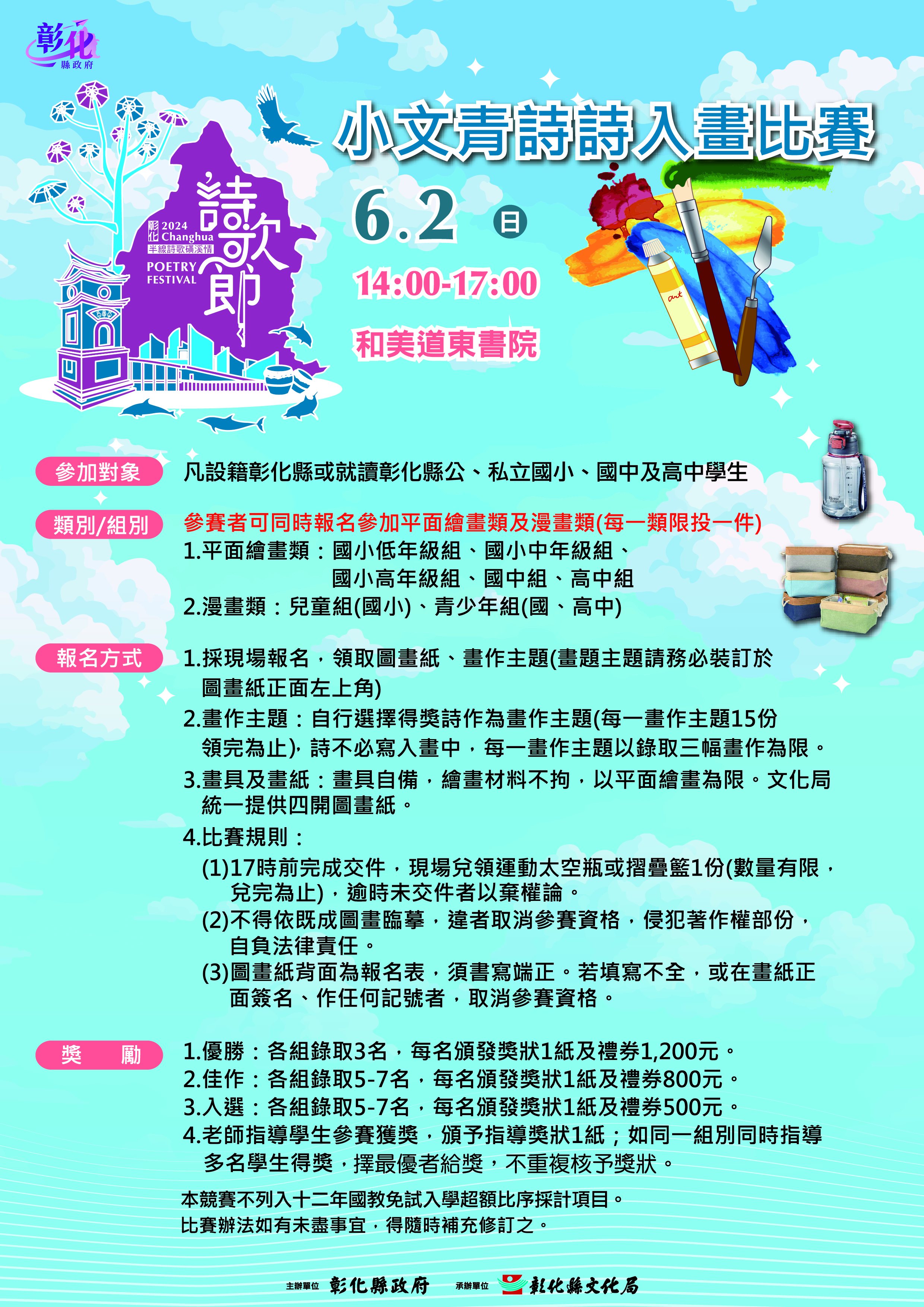 | 二、 | 比賽地點:和美鎮道東書院。 |